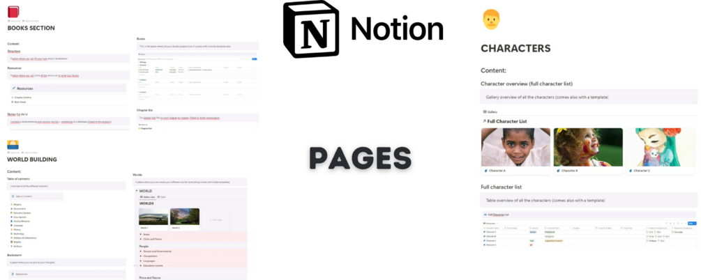 • Navigation: Easy access to different sections like Books, Characters, World Building, Places, and Writing Schedule.